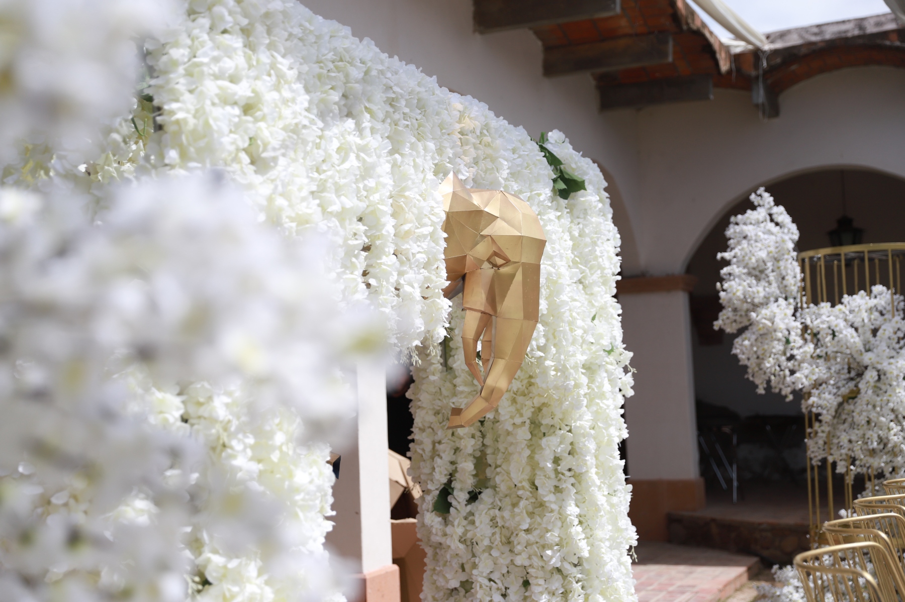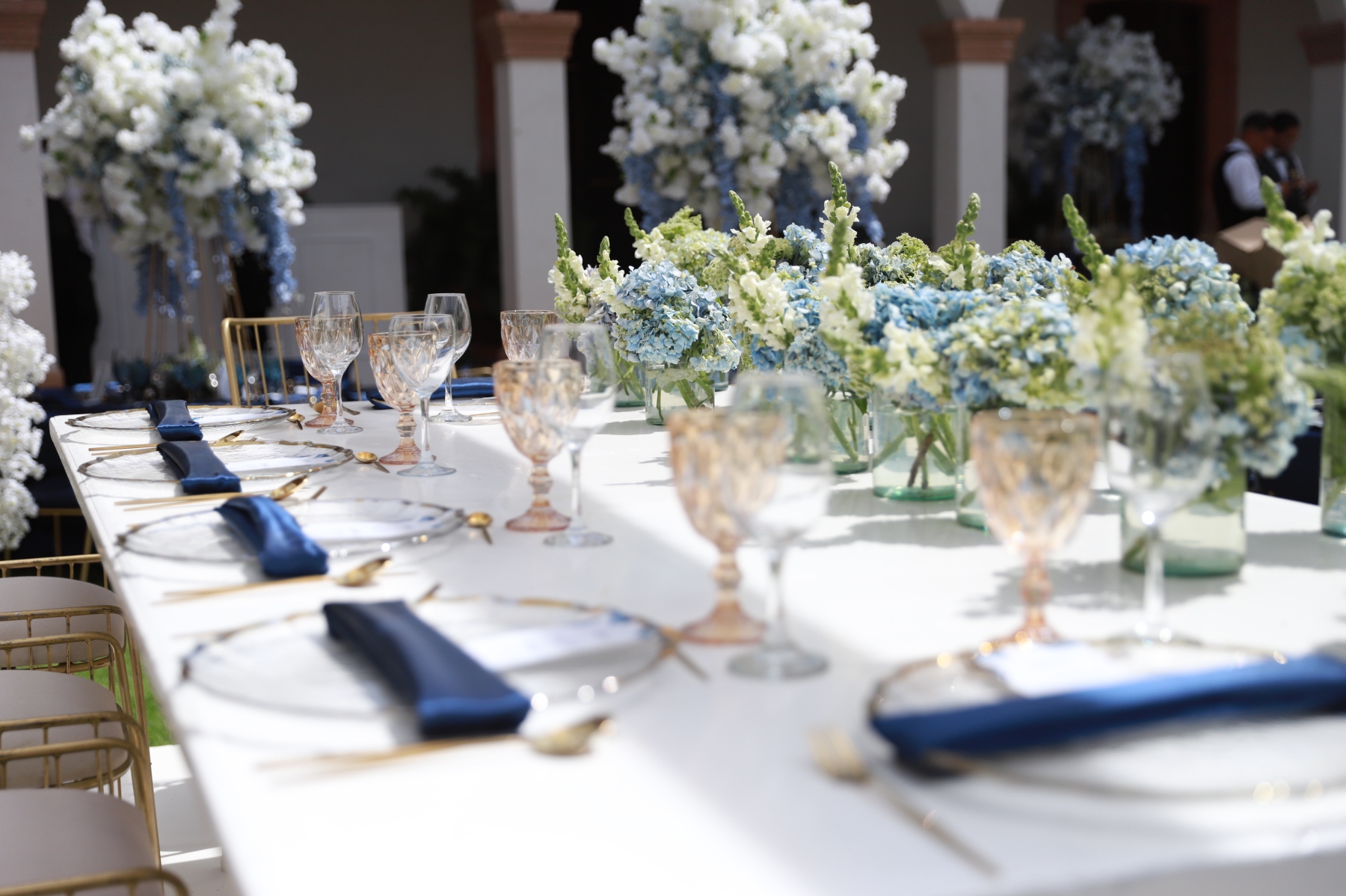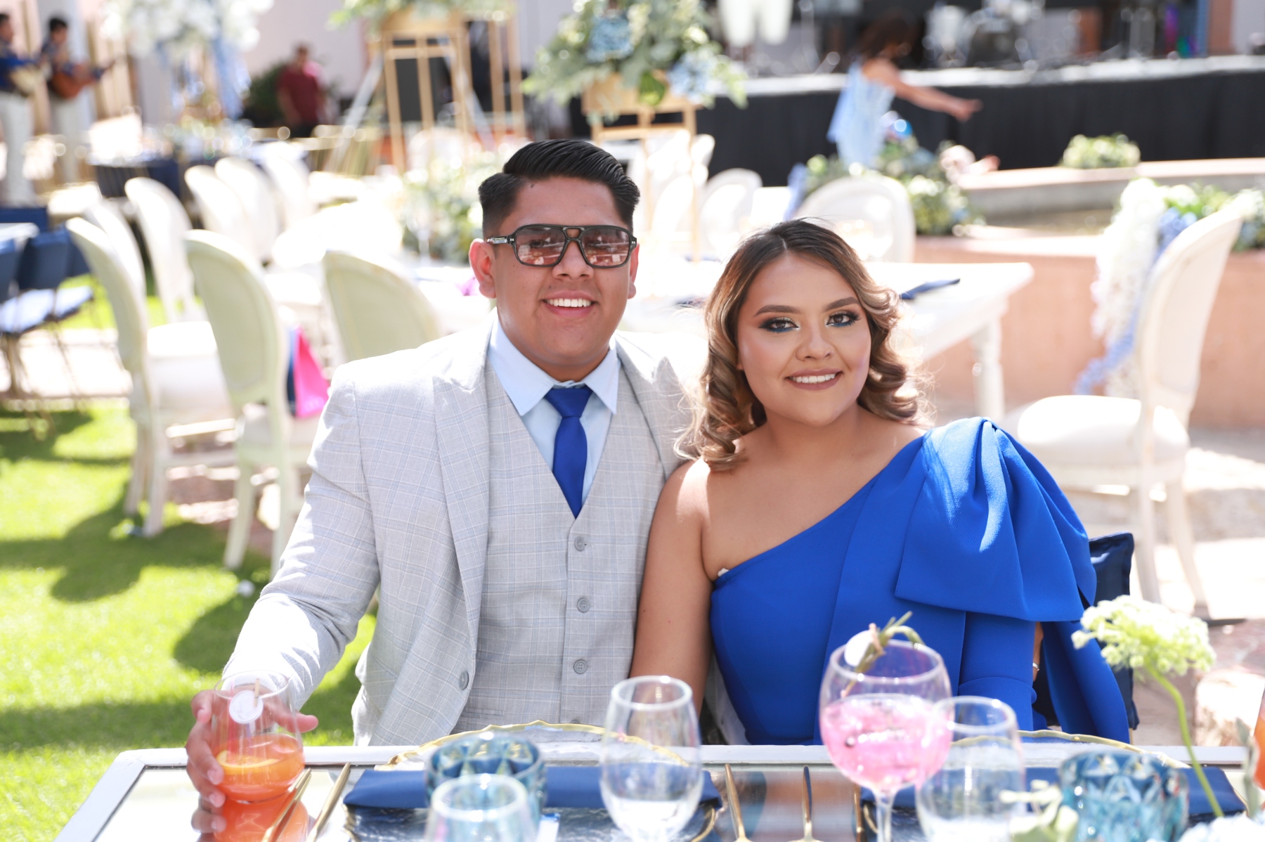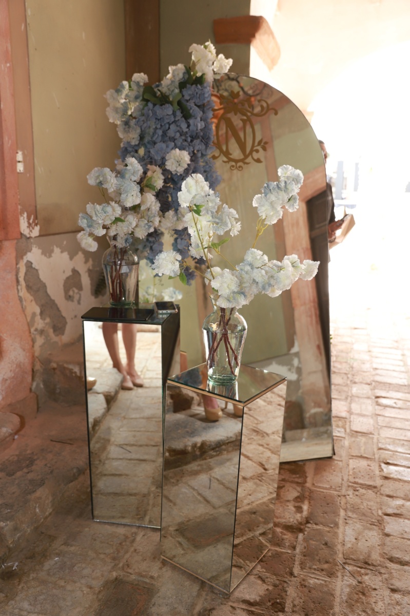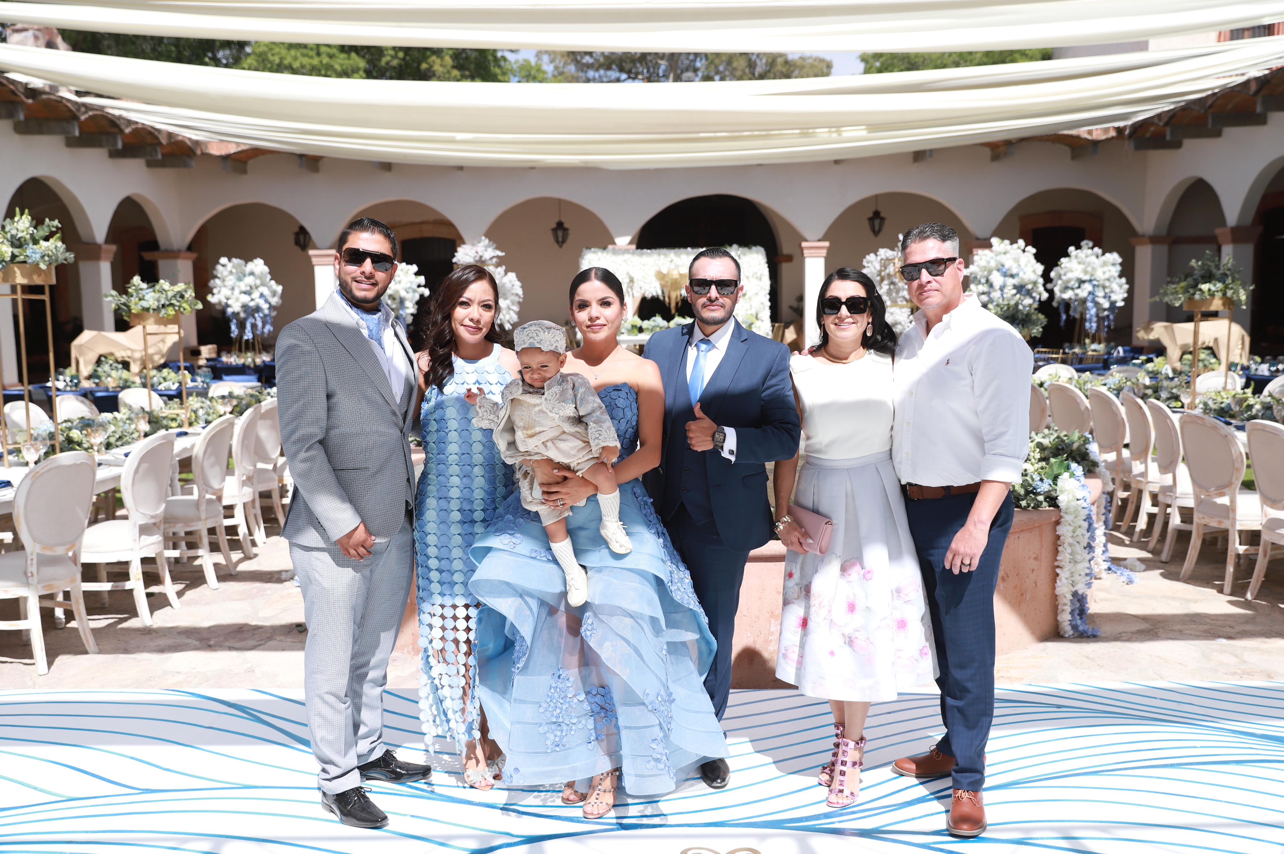 emotiva ceremonia religiosa, recibió el sacramento del bautismo y luego la presentación. Una vez concluida la ceremonia religiosa, la familia se retiró muy feliz del lugar para dar la bienvenida a sus familiares y amigos en la Hacienda El Saucillo. El entorno fue decorado con detalles florales en tonos blancos y azules, elegante mobiliario y mesas de honor, así como una refrescante coctelería para todos los asistentes, quienes al llegar felicitaron a la