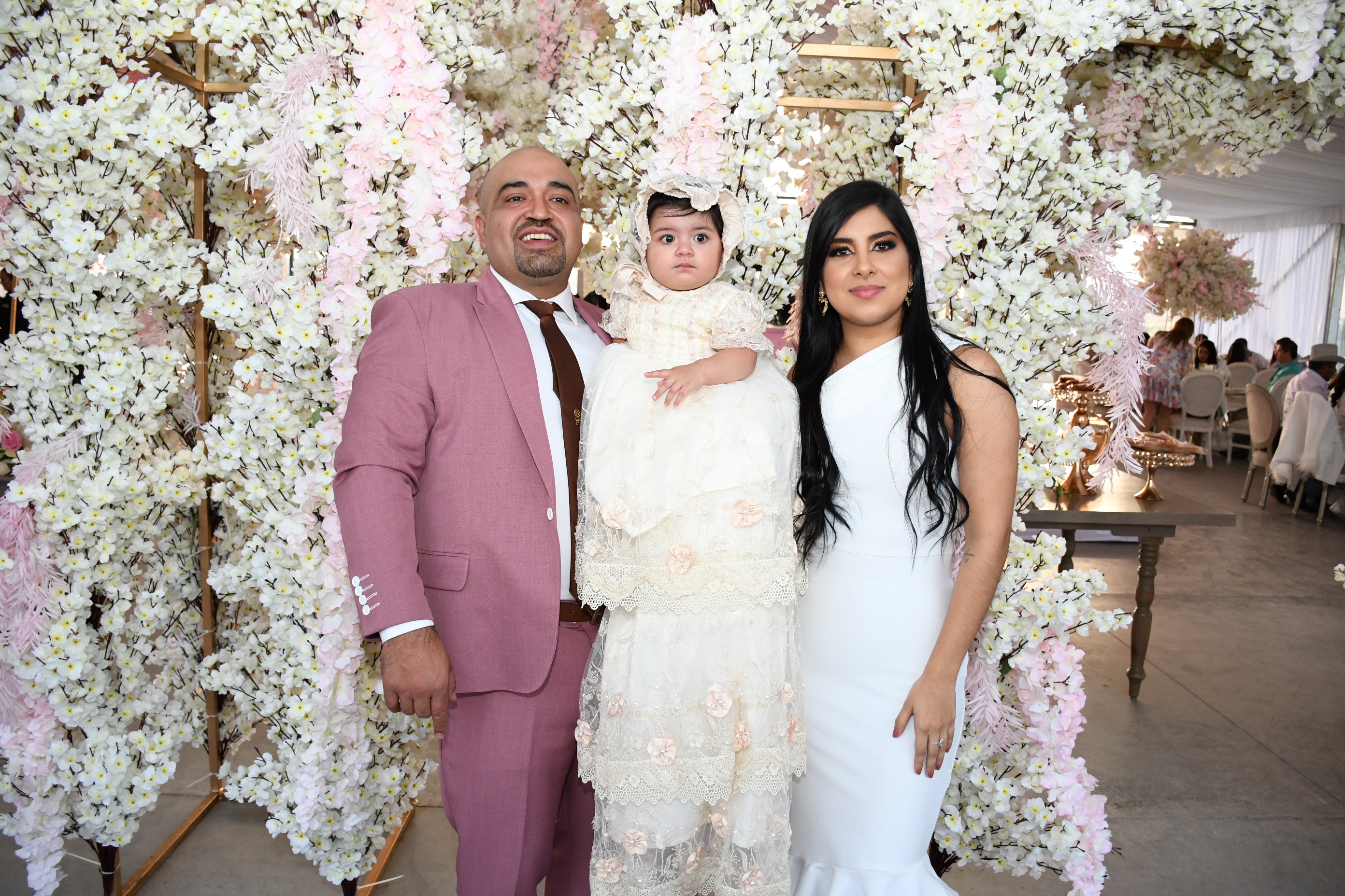 Frida Arellano y José Velázquez ofrecieron una elegante recepción con motivo del bautizo de su pequeña hija Sofia. La festejada tuvo el honor de recibir este importante sacramento en el santuario de Nuestra Señora de Guadalupe, acompañada de sus padrinos Janeth y Daniel Velázquez. La celebración tuvo lugar en el jardín de eventos Terrarosa donde ya esperaban a todos sus invitados especiales con una barra de coctelería, exquisito menú y juegos inflables para los pequeños. El festejo se convirtió en un inolvidable día para toda la familia Velázquez Arellano, quienes estuvieron rodeados de amigos y familiares.