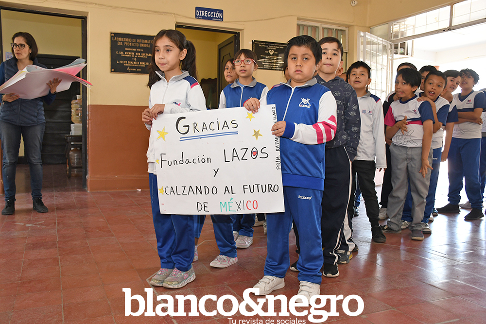 Una mañana muy especial fue la que vivieron los alumnos de la Escuela Primaria Rafael Arellano Valle el pasado martes 15 de abril, gracias a la sorpresiva visita de la Fundación Calzando el Futuro de México, un proyecto que continúa firme en su noble misión de brindar calzado digno y adecuado a niñas y niños que, en muchas ocasiones, no cuentan con el calzado necesario para asistir a la escuela o realizar actividades deportivas y cotidianas durante su formación educativa. Este esfuerzo nace al reconocer que, para muchas familias, el golpe económico representa una barrera que impide a los pequeños continuar con su educación, pues la falta de calzado adecuado llega a ser un motivo por el cual dejan de asistir a clases. Las talentosas empresarias Caro Álvarez, Paulina Rodríguez y Alejandra Ramírez decidieron unir fuerzas con la Fundación Lazos y con la participación especial de los pequeños estudiantes del Bosques International School para