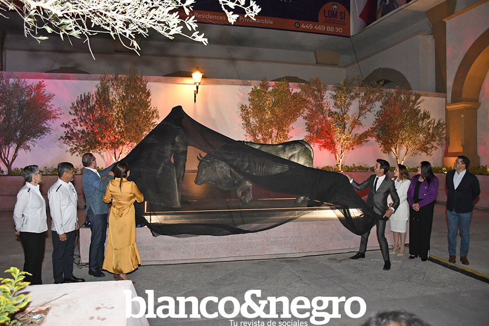 personalidades. Acompañando a la gobernadora Tere Jiménez estuvieron su esposo, el ganadero Luis Alberto Villarreal; Aurora Jiménez Esquivel, presidenta del DIF Estatal; Esther María Camacho Ramírez, esposa de Arturo Macías, junto con sus hijos; Leonardo Montañez Castro, presidente municipal de Aguascalientes; Luis León, presidente de la Mesa Directiva del Congreso del Estado; la diputada Alma Hilda Medina Macías; el escultor Sergio Peraza y su esposa, Vanesa Domínguez; así como José Ángel González Serna, director del Patronato de la Feria Nacional de San Marcos, y su esposa Irma Cristina Flores. También se contó con la presencia de Héctor Alejandro Vázquez Zúñiga, director del Instituto Cultural de Aguascalientes, y de Daniela I, Reina de la FNSM, acompañada por su segunda princesa, Nicole Palacios. Durante la ceremonia se pronunciaron emotivas palabras dedicadas al matador, resaltando su valor, trayectoria y