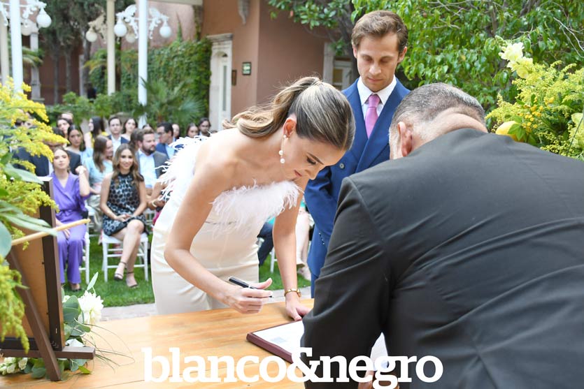Muy enamorados, Sofía Revilla y Alan Mogollón se despidieron de la soltería. Su gran día comenzó con una hermosa ceremonia civil en la que unieron sus vidas por la ley, en presencia de sus padres, familiares, testigos y amigos. La celebración tuvo lugar en la Quinta Magnolias, donde los novios estuvieron rodeados de sus seres queridos, quienes compartieron con ellos la alegría y la emoción del momento. Al término de las firmas, los recién casados realizaron un emotivo brindis, acompañados por todos los presentes quienes les desearon lo mejor en esta nueva etapa que están por iniciar.