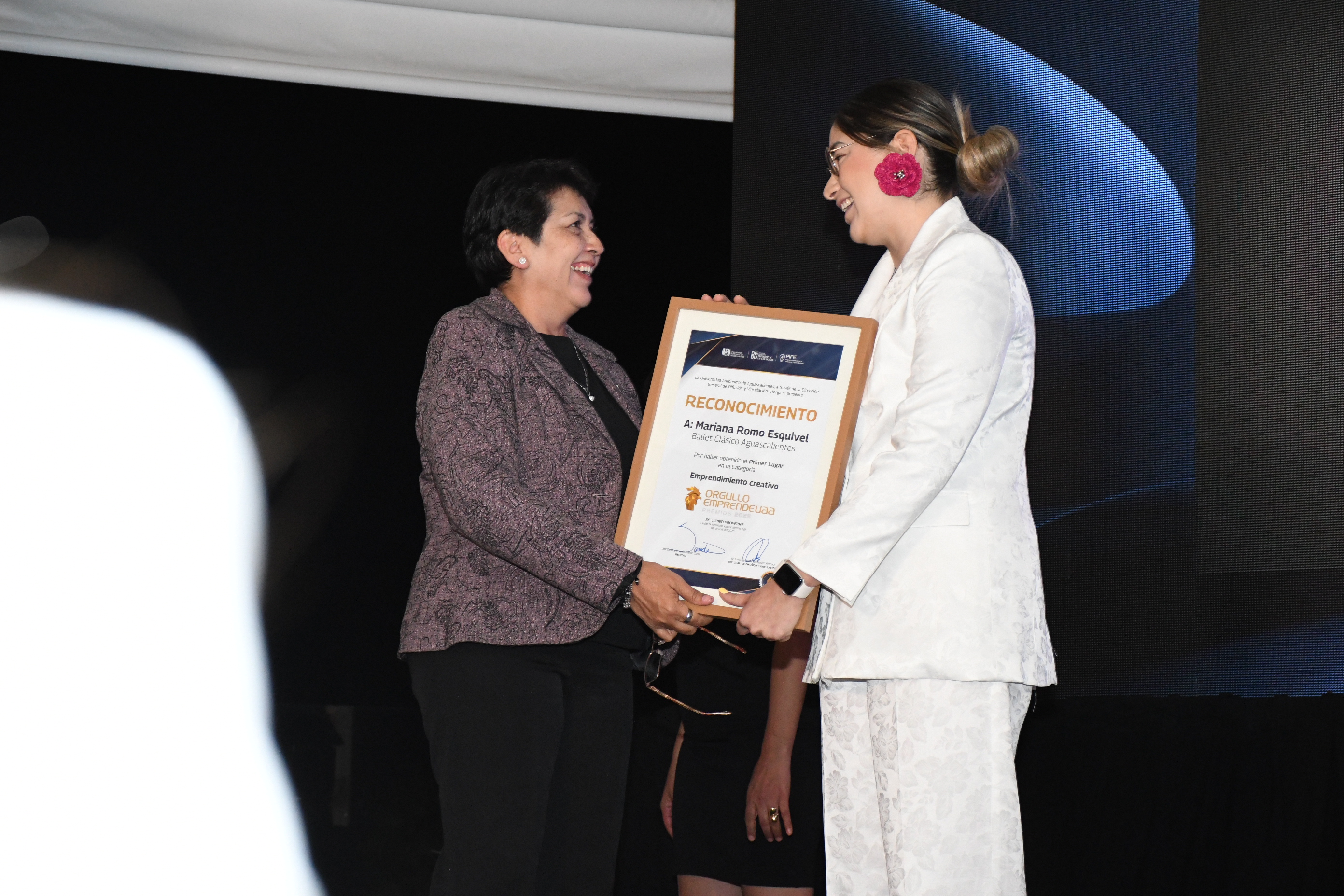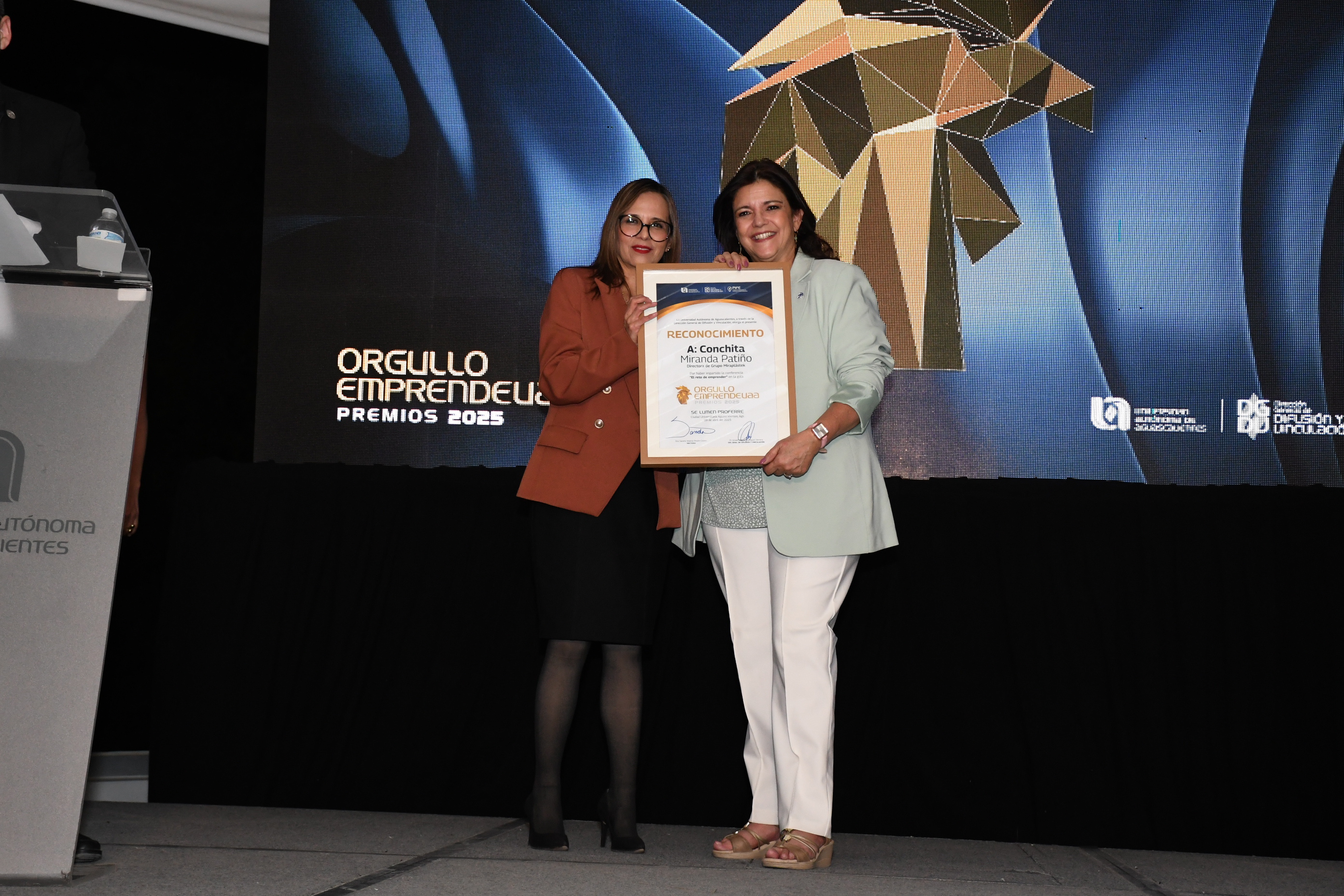 La noche del miércoles 9 de abril se vivió una velada inolvidable con motivo de la Gala de Premiación “Orgullo Emprende UAA”, un evento que reunió a egresados de diversas áreas de la Universidad Autónoma de Aguascalientes, quienes hoy destacan a nivel nacional gracias a sus exitosos emprendimientos. La gala reconoció a cinco finalistas de las carreras del área económico-administrativa, seleccionando al proyecto que ha logrado destacarse por su impacto en comercialización, responsabilidad social y creatividad, a través de técnicas de trabajo innovadoras. El evento dio inicio con la presentación de autoridades universitarias, seguido de una inspiradora conferencia titulada “El reto de emprender”, impartida por la reconocida empresaria y emprendedora Conchita Miranda.