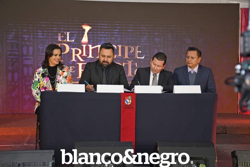 La Universidad Panamericana Campus Bonaterra deslumbró con una renovada puesta en escena, presentando a los 161 integrantes del musical y obra teatral titulada ‘El Príncipe de Egipto’. El evento, marcado por una elegante alfombra roja, reveló el fruto del arduo trabajo llevado a cabo desde septiembre de 2023 por profesores, directivos y estudiantes. Este proyecto escénico promete sorprender a los presentes. El musical está basado en la historia bíblica de Moisés, desde su nacimiento en Egipto hasta su travesía por el Mar Rojo. La inspiración proviene tanto de la película animada producida por los estudios DreamWorks Animation en 1998, como de la obra de teatro presentada en Londres en 2017, con música del compositor Stephen Schwartz. La presentación estuvo a cargo del Dr. Antonio de los Reyes Moreno, rector de la UP; el Mtro. Alejandro Vázquez Zúñiga, director del Instituto Cultural de Aguascalientes; el Lic. Javier Hernández Parga, director de promoción y difusión del ICA; y la directora de arte y cultura de la UP, Michelle Reymond. El musical tendrá cuatro funciones los días 19, 25 y 26 de mayo en el Teatro Aguascalientes.