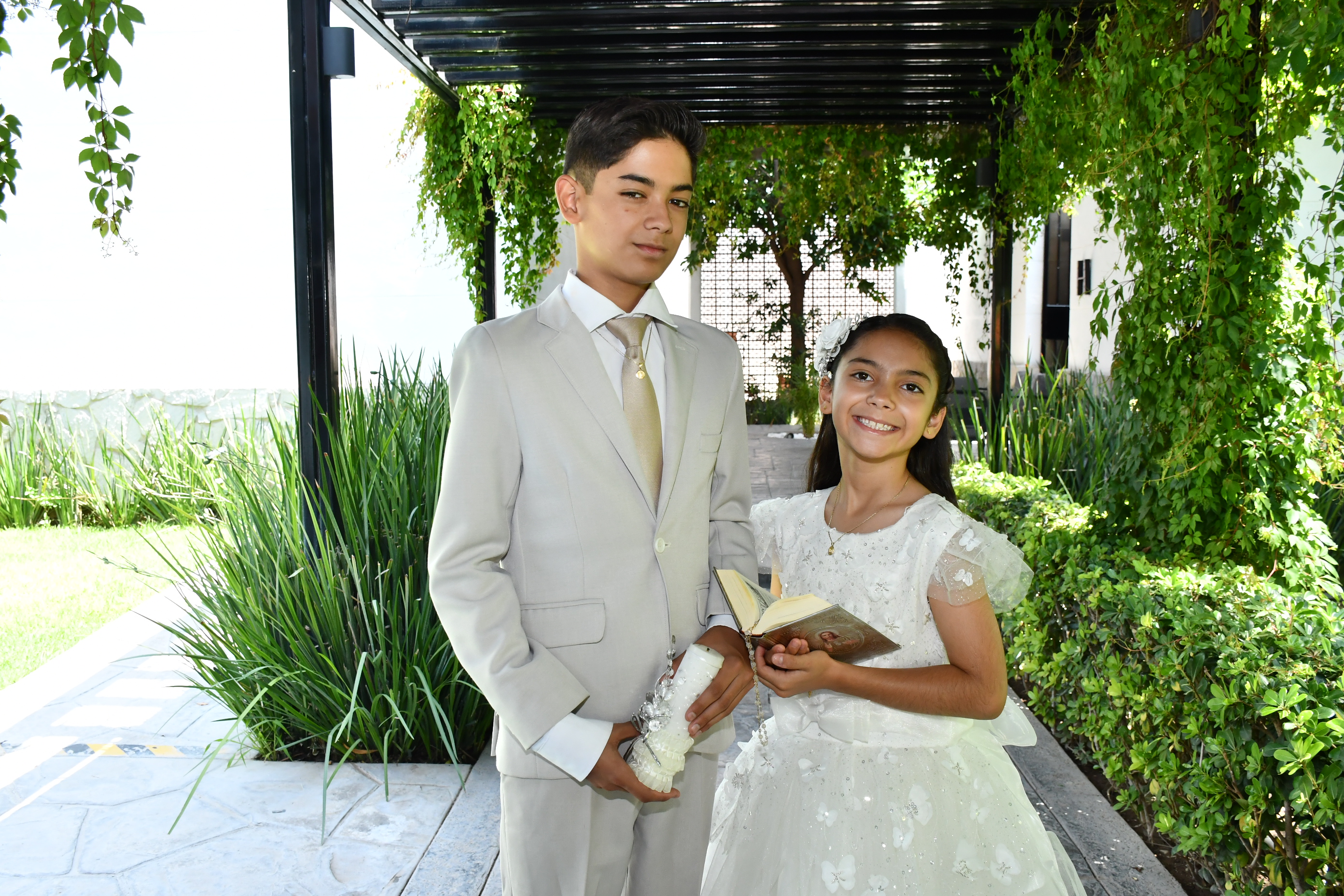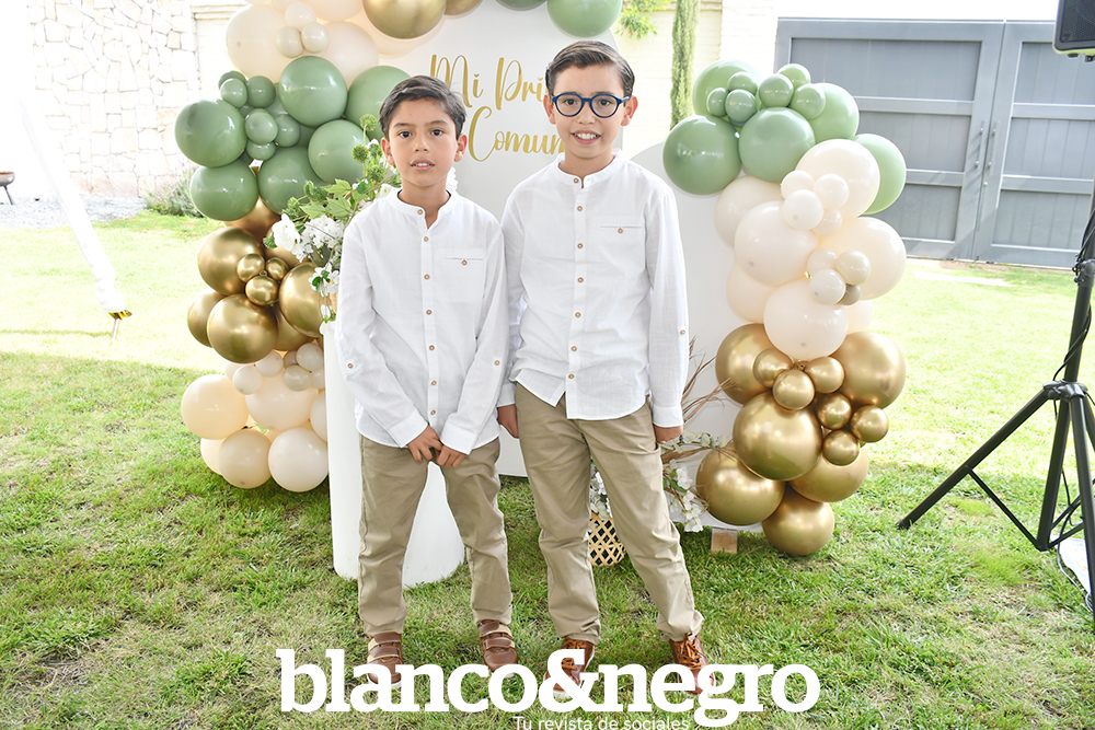 Los hermanos Santiago y Bernardo Márquez Moreno recibieron el sacramento de la Primera Comunión acompañados por sus padres, padrinos y seres queridos. Posteriormente, la familia ofreció una cálida recepción en compañía de familiares y amigos para celebrar con una tarde llena de rica comida, música en vivo y juegos para los pequeños.