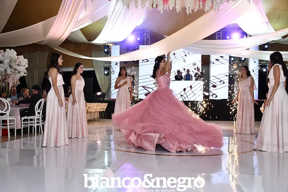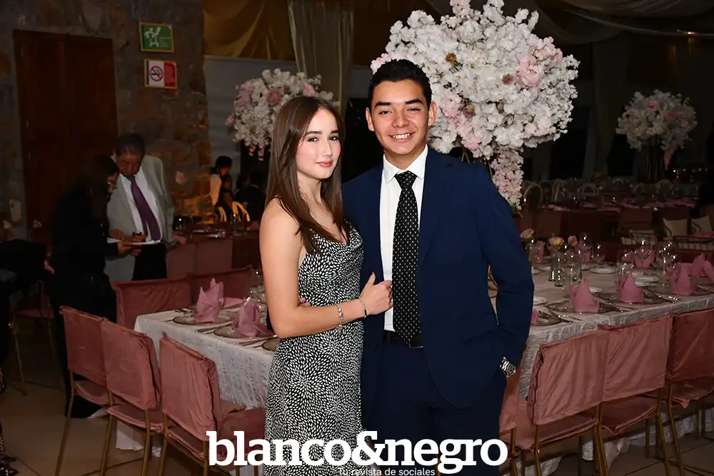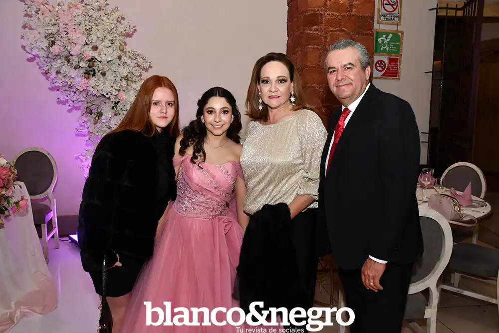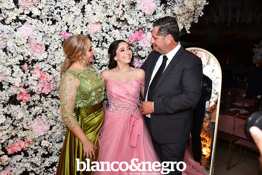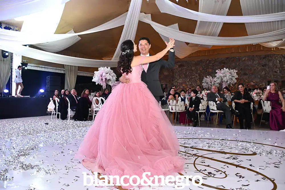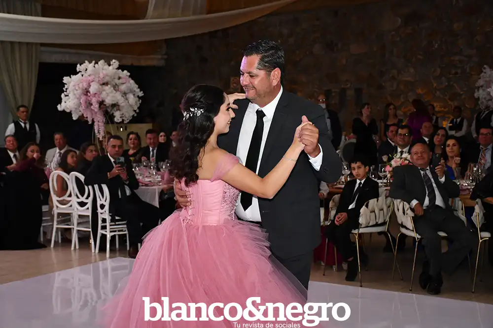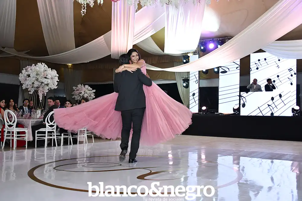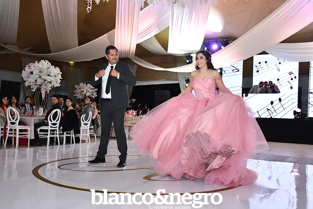 Andrea Martínez celebró sus quince años en una gran noche organizada con todo el cariño de sus papás, Arlette Barragán y Eduardo Martínez. Su día comenzó con una ceremonia religiosa que se llevó a cabo en la Capilla del Sagrado Corazón de Jesús, donde la acompañaron sus padres y sus padrinos, Erika Barragán y Jorge Orrin. Posterior a la misa, Andrea fue recibida en el Salón El Herradero, ambientado con una decoración donde predominaban los tonos rosas y blancos. Amigos y familiares la acompañaron durante esta noche especial, siendo cómplices de momentos muy emotivos, como los diferentes vals que bailó con sus amigas, sus papás, su abuelito y demás familiares.