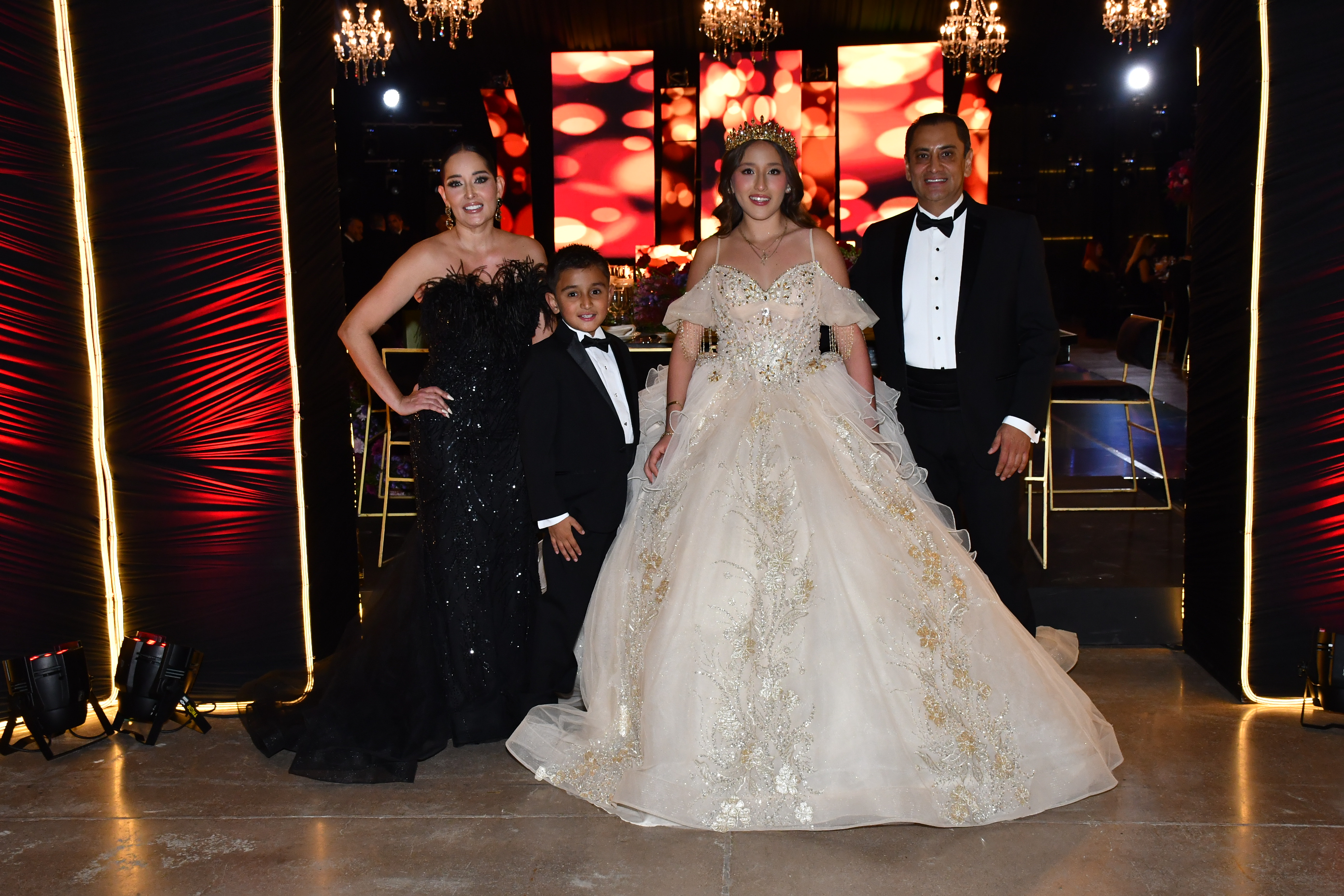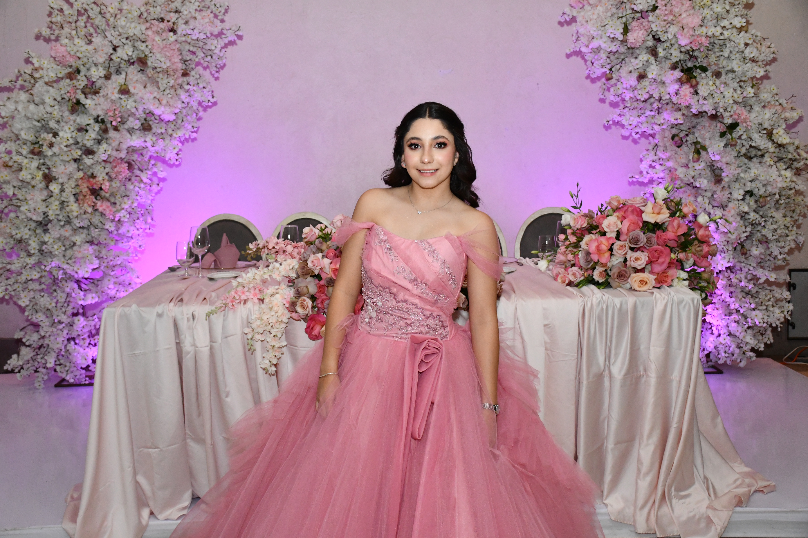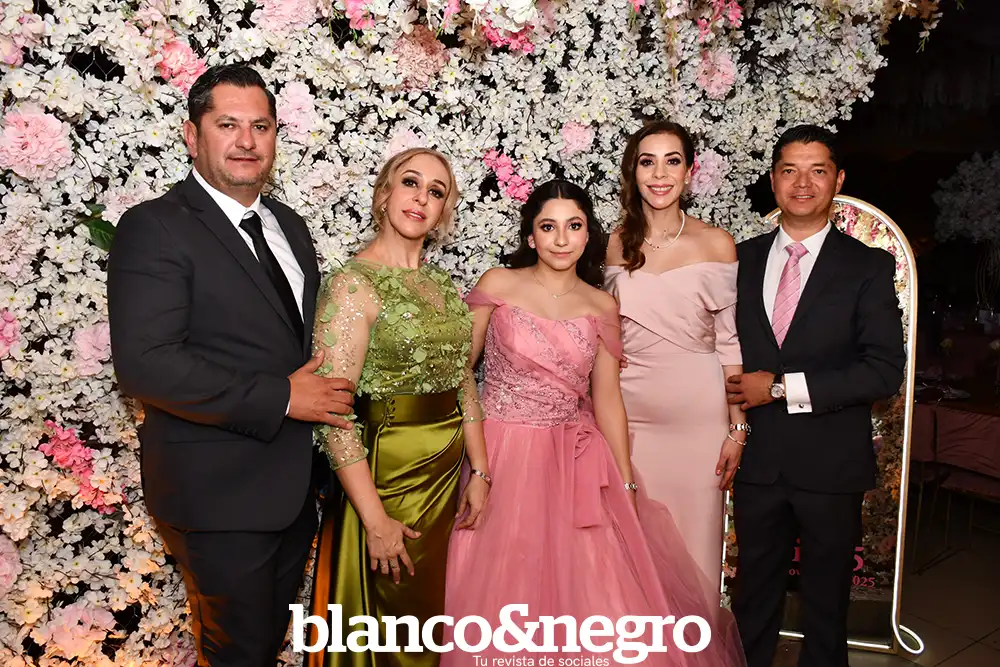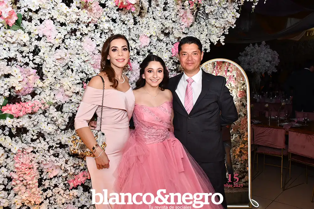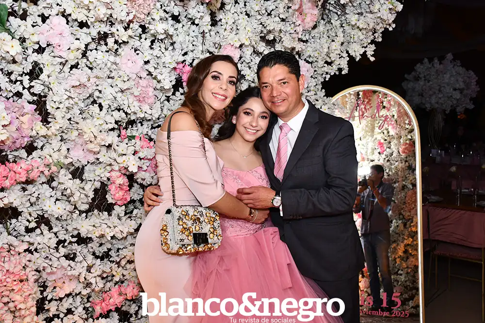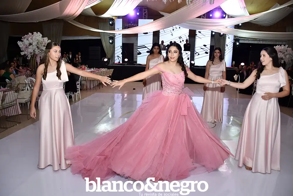 Andrea Martínez celebró sus quince años en una gran noche organizada con todo el cariño de sus papás, Arlette Barragán y Eduardo Martínez. Su día comenzó con una ceremonia religiosa que se llevó a cabo en la Capilla del Sagrado Corazón de Jesús, donde la acompañaron sus padres y sus padrinos, Erika Barragán y Jorge Orrin. Posterior a la misa, Andrea fue recibida en el Salón El Herradero, ambientado con una decoración donde predominaban los tonos rosas y blancos. Amigos y familiares la acompañaron durante esta noche especial, siendo cómplices de momentos muy emotivos, como los diferentes vals que bailó con sus amigas, sus papás, su abuelito y demás familiares.